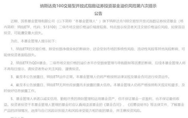 国泰基金也连续发布了溢价风险的提示性公告,比如昨日发布了第六次提示公告。